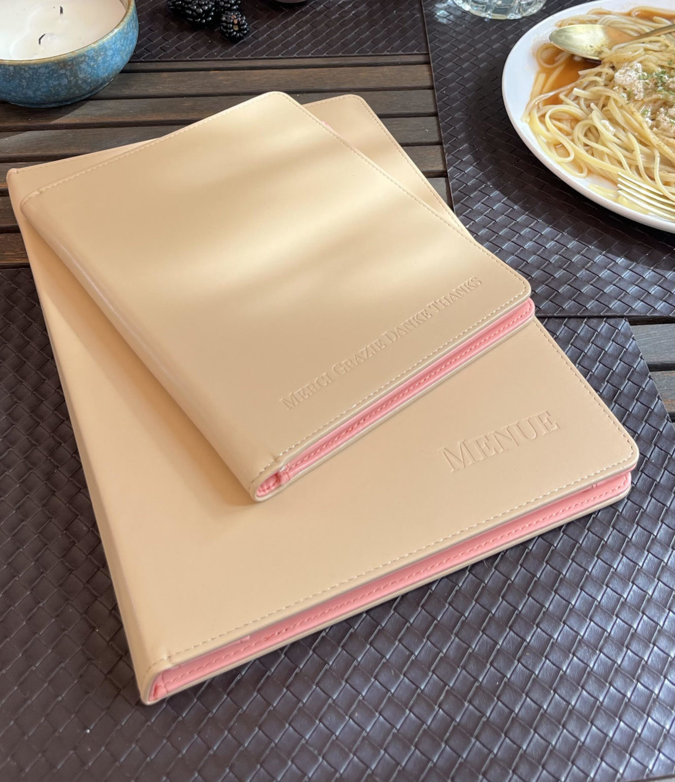 Speisekarten, Getränkekarten, Barkarten, Dessertkarten und Weinkarten aus Leder und Kunstleder von Deleag Germany bieten für jeden Anlass die perfekte Karte.