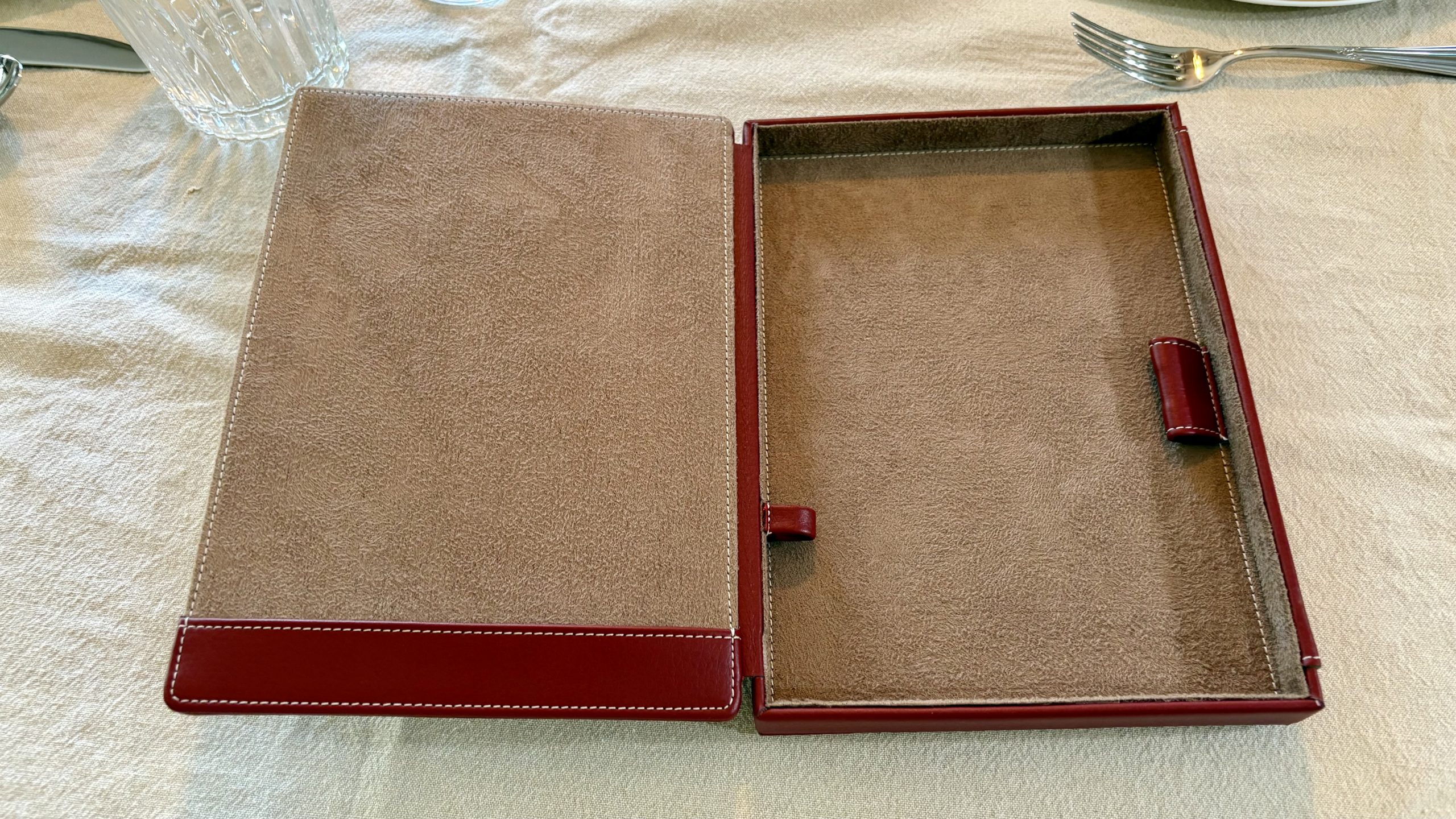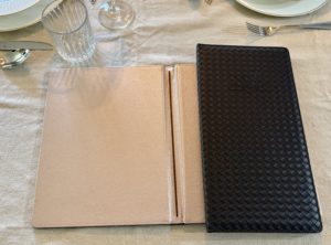 Romantischer Winkel Romantik Hotels Speisekarte und Rechnungsox Bordeaux